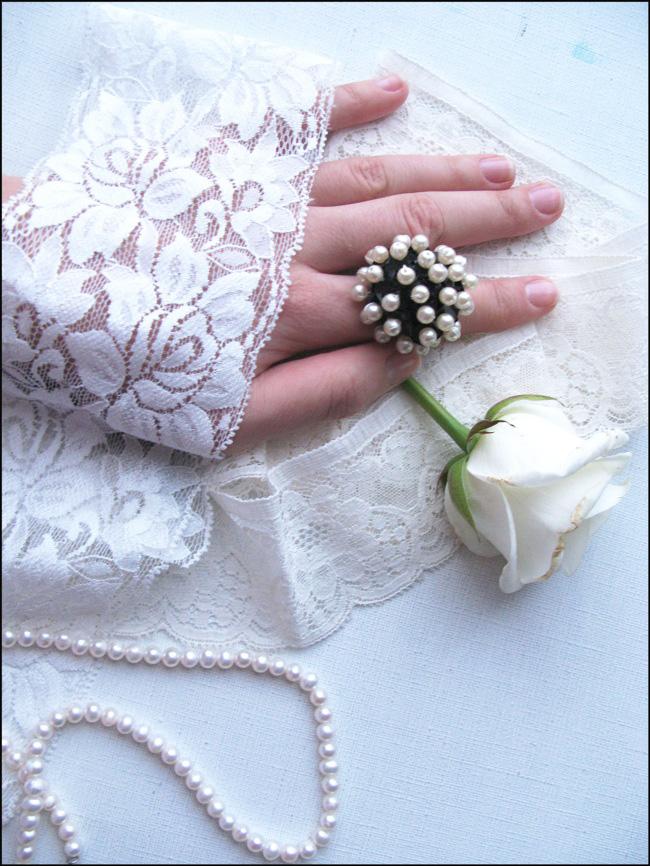 Мягкая шерстяная основа, расшитая пайетками и искусственным жемчугом.
